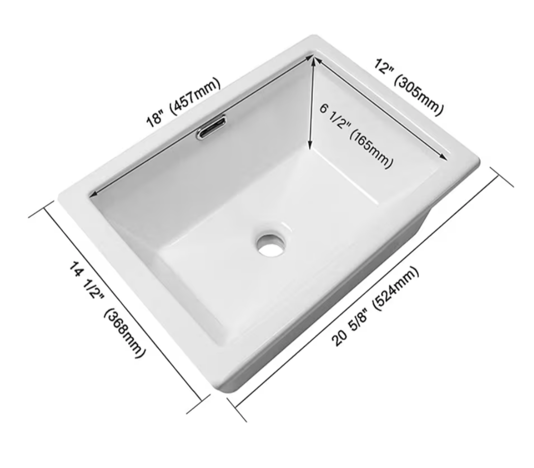 Enbol 20.6" x 14.5" Drop in Bathroom Sink Rectangule Vessel Sink Self-rimming Top Mount Bathroom Sink White Ceramic Lavatory Vanity with Overflow