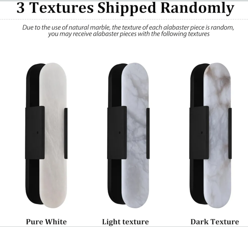 Sucelating 19.7in Matte Black Alabaster Wall Sconces, Natural Marble Wall Sconces Indoor Alabaster Sconces for Living Room Modern Alabaster Sconces Wall Lighting for Dining Room Stairs Bedroom